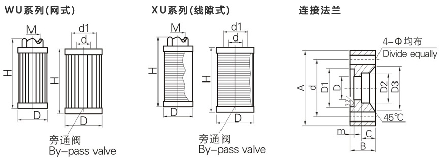 WU,XU系列吸油過濾器屬于粗過濾器,一般安裝在油泵的吸油口處,用以保護油泵避免吸入較大的機械雜質(zhì)。該過濾器結(jié)構(gòu)簡單,通油能力大阻力小,并設(shè)有管式、法蘭式連接,分網(wǎng)式、線隙式兩種。