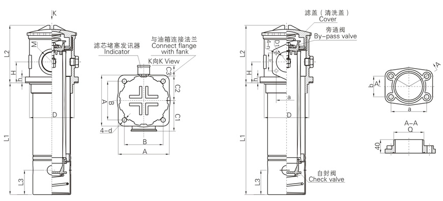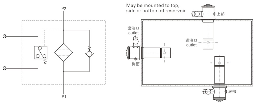 3、具有濾芯污染發(fā)訊器與油路旁通閥,提高了液壓系統(tǒng)的可靠性;