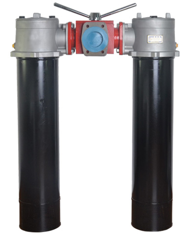 當(dāng)一只過濾器的濾芯堵塞,致使進(jìn)出口壓差為0.35MPa時(shí),發(fā)訊器發(fā)訊,這時(shí),轉(zhuǎn)動(dòng)換向閥,使備用濾油器工作,然后更換已堵塞的濾芯。