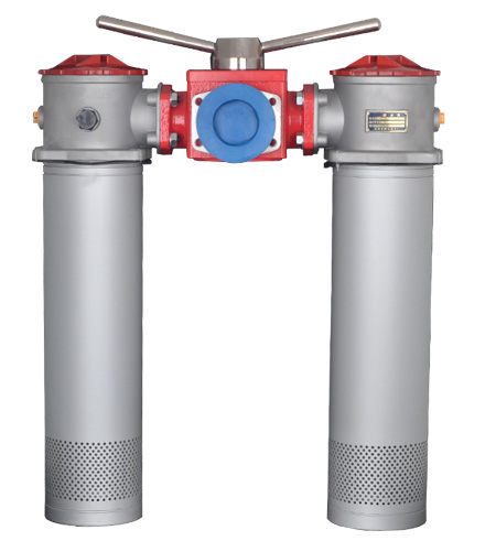 當(dāng)一只過濾器的濾芯堵塞致使進(jìn)出口壓差為0.35MPa時(shí),發(fā)訊器發(fā)訊,這時(shí),轉(zhuǎn)動換向閥,使備用濾油器工作,然后更換已堵塞的濾芯。