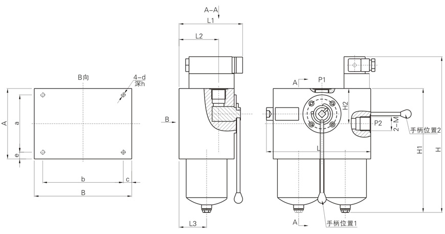 | 型號 | H | H1 | H2 | L | L1 | L2 | A | a | B | b | M | d | h | c | e | L3 |