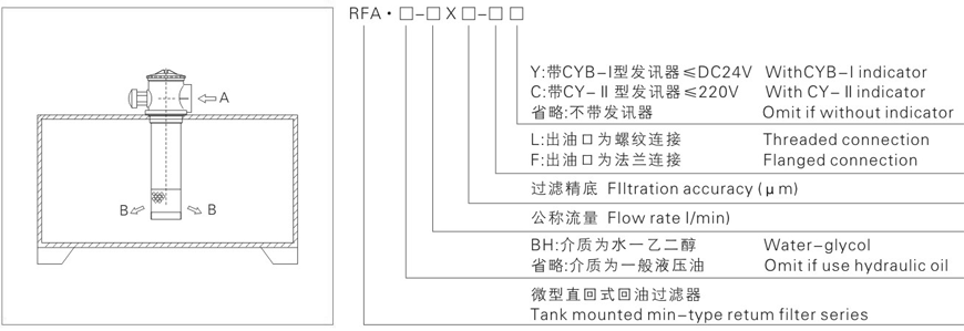 RFA系列微型直回式回油過濾器(新型結(jié)構(gòu)代替LHN系列)用于液壓系統(tǒng)回油精過濾,濾除液壓系統(tǒng)中元件磨損產(chǎn)生的金屬顆粒以及密封件的橡膠雜質(zhì)等污染物,使流回油箱的油液保持清潔。